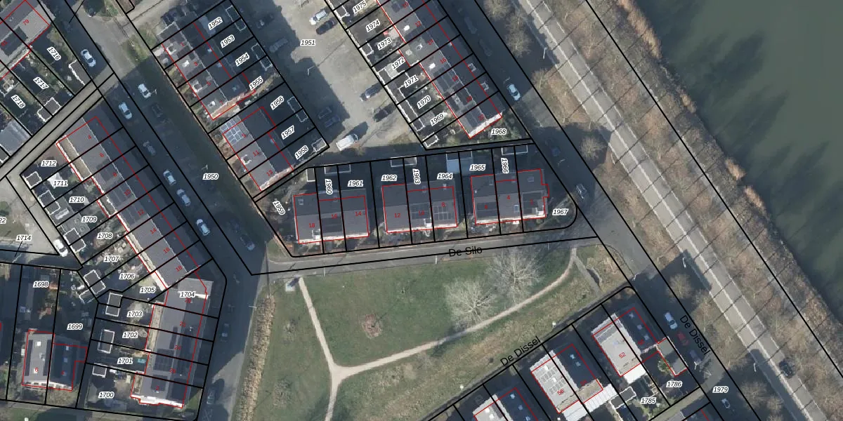 Het perceel waarop De Silo 10 staat heeft een oppervlakte van 112 m². Dit is een middelgroot perceel. De perceeloppervlakte wordt geregistreerd door het Kadaster. Gedetailleerde informatie over de maten van dit perceel kunt u vinden in het rapport Kadastrale kaart met maatvoering van De Silo 10.