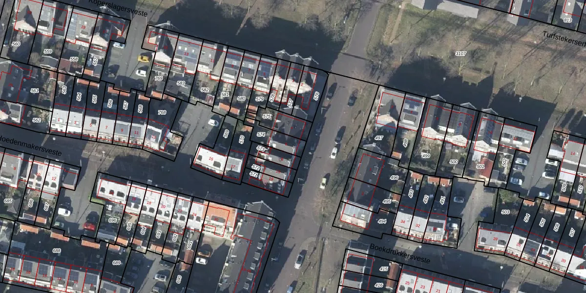 Gebruik de zoekbalk of klik op een perceel voor informatie over de adressen binnen dit perceel.