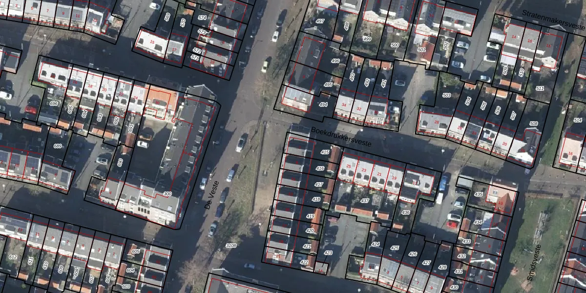 Het perceel waarop De Veste 7 staat heeft een oppervlakte van 132 m². Dit is een middelgroot perceel. De perceeloppervlakte wordt geregistreerd door het Kadaster. Gedetailleerde informatie over de maten van dit perceel kunt u vinden in het rapport Kadastrale kaart met maatvoering van De Veste 7.