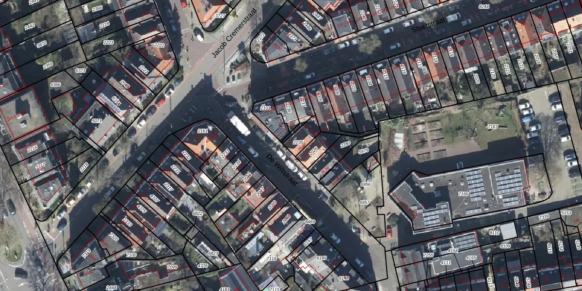 Het perceel waarop De Wiltstraat 38 staat heeft een oppervlakte van 80 m². Dit is een klein perceel. De perceeloppervlakte wordt geregistreerd door het Kadaster. Gedetailleerde informatie over de maten van dit perceel kunt u vinden in het rapport Kadastrale kaart met maatvoering van De Wiltstraat 38.