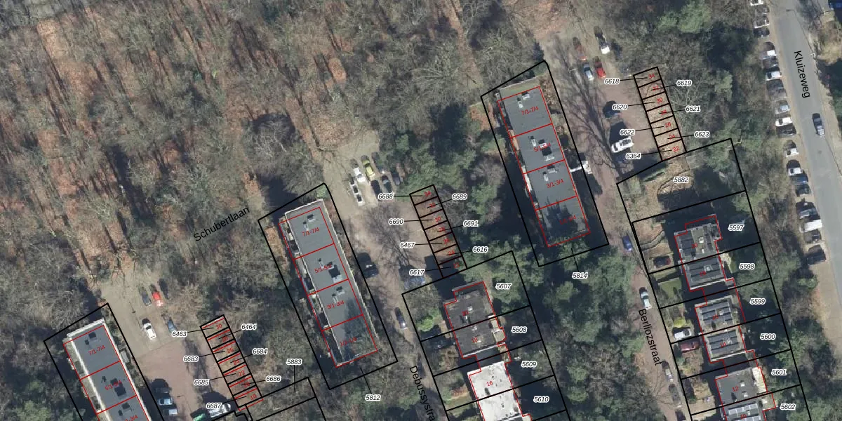 Het perceel waarop Debussystraat 32 staat heeft een oppervlakte van 18 m². Dit is een klein perceel. De perceeloppervlakte wordt geregistreerd door het Kadaster. Gedetailleerde informatie over de maten van dit perceel kunt u vinden in het rapport Kadastrale kaart met maatvoering van Debussystraat 32.