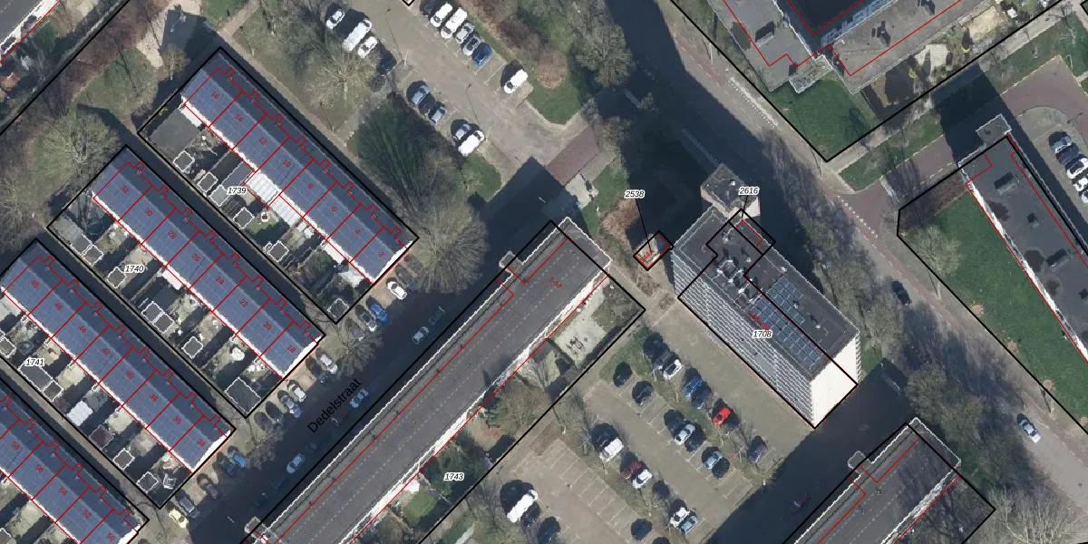 Het perceel waarop Dedelstraat 1-A staat heeft een oppervlakte van 2181 m². Dit is een zeer groot perceel. De perceeloppervlakte wordt geregistreerd door het Kadaster. Gedetailleerde informatie over de maten van dit perceel kunt u vinden in het rapport Kadastrale kaart met maatvoering van Dedelstraat 1-A.