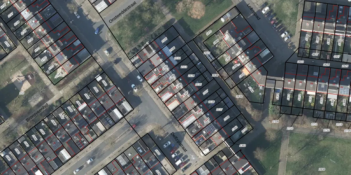 Gebruik de zoekbalk of klik op een perceel voor informatie over de adressen binnen dit perceel.