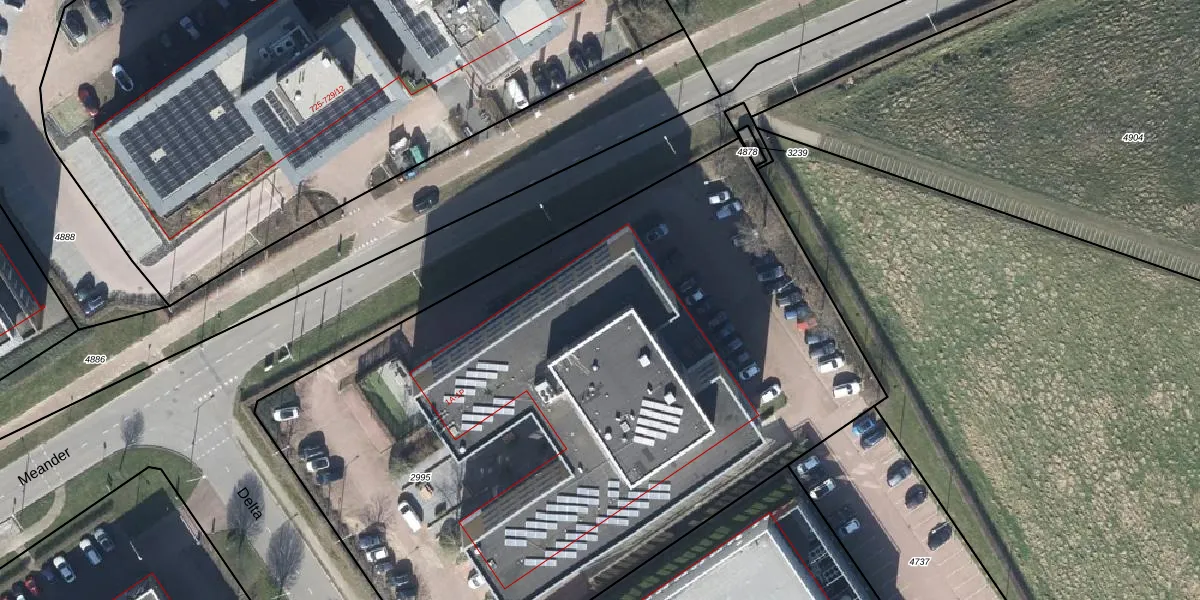 Het perceel waarop Delta 1-G staat heeft een oppervlakte van 4925 m². Dit is een zeer groot perceel. De perceeloppervlakte wordt geregistreerd door het Kadaster. Gedetailleerde informatie over de maten van dit perceel kunt u vinden in het rapport Kadastrale kaart met maatvoering van Delta 1-G.