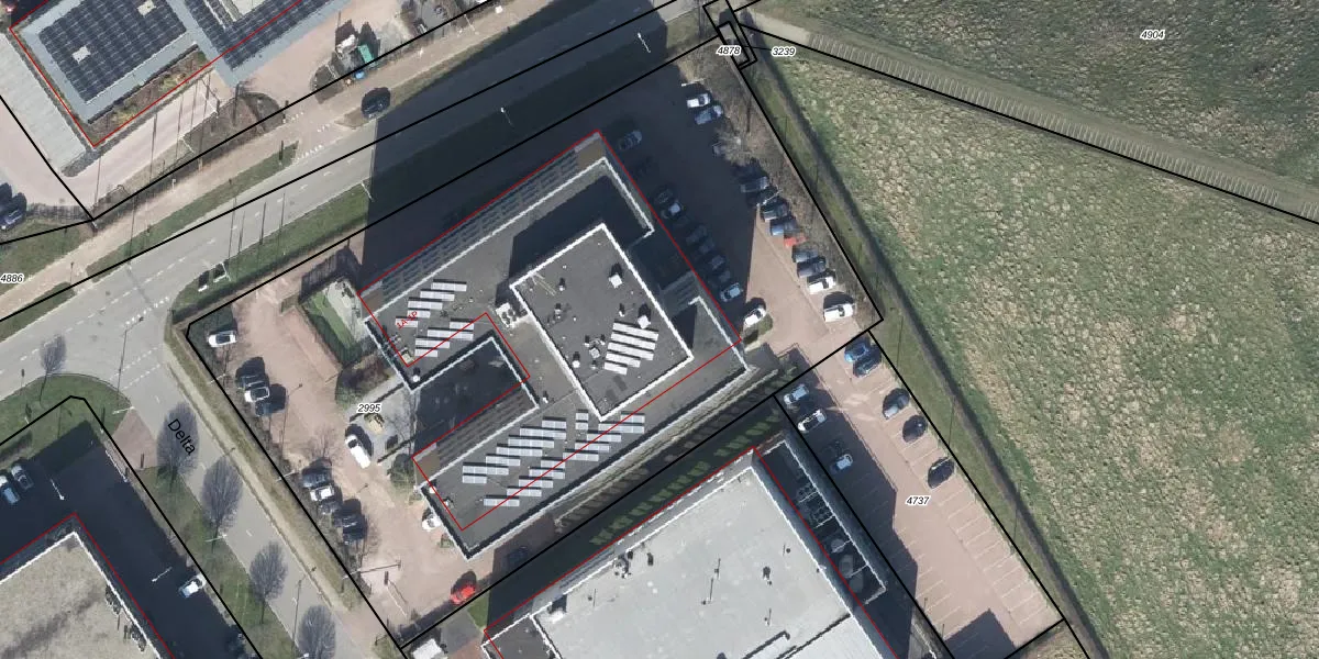 Het perceel waarop Delta 1-L staat heeft een oppervlakte van 4925 m². Dit is een zeer groot perceel. De perceeloppervlakte wordt geregistreerd door het Kadaster. Gedetailleerde informatie over de maten van dit perceel kunt u vinden in het rapport Kadastrale kaart met maatvoering van Delta 1-L.