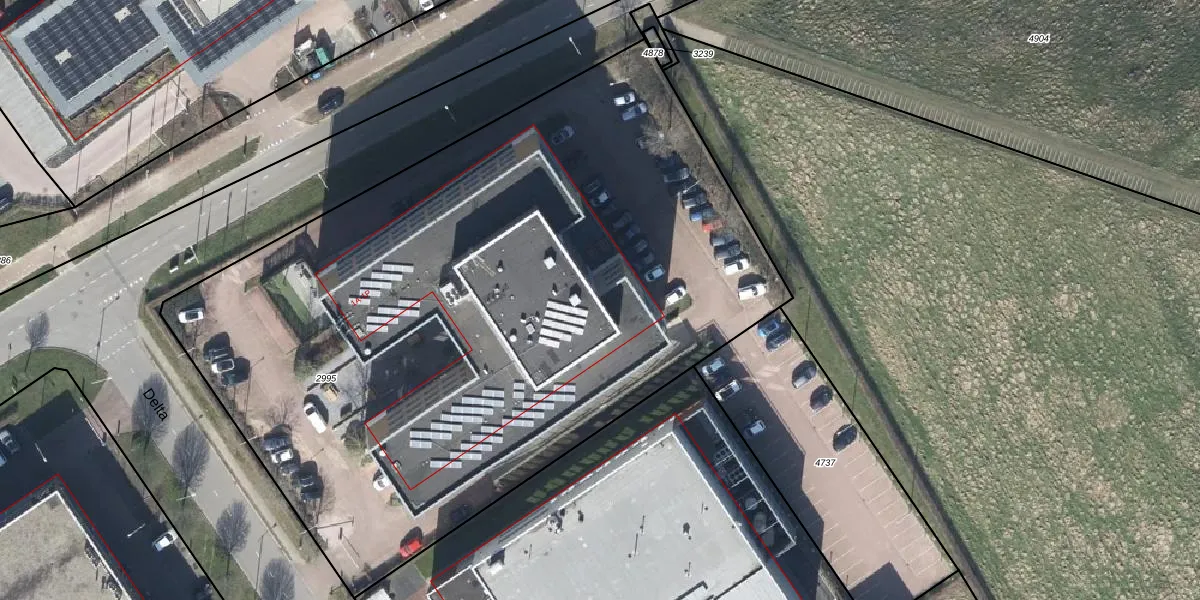 Het perceel waarop Delta 1-P staat heeft een oppervlakte van 4925 m². Dit is een zeer groot perceel. De perceeloppervlakte wordt geregistreerd door het Kadaster. Gedetailleerde informatie over de maten van dit perceel kunt u vinden in het rapport Kadastrale kaart met maatvoering van Delta 1-P.