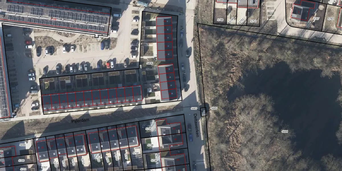 Het perceel waarop Deltawerken 31 staat heeft een oppervlakte van 2385 m². Dit is een zeer groot perceel. De perceeloppervlakte wordt geregistreerd door het Kadaster. Gedetailleerde informatie over de maten van dit perceel kunt u vinden in het rapport Kadastrale kaart met maatvoering van Deltawerken 31.