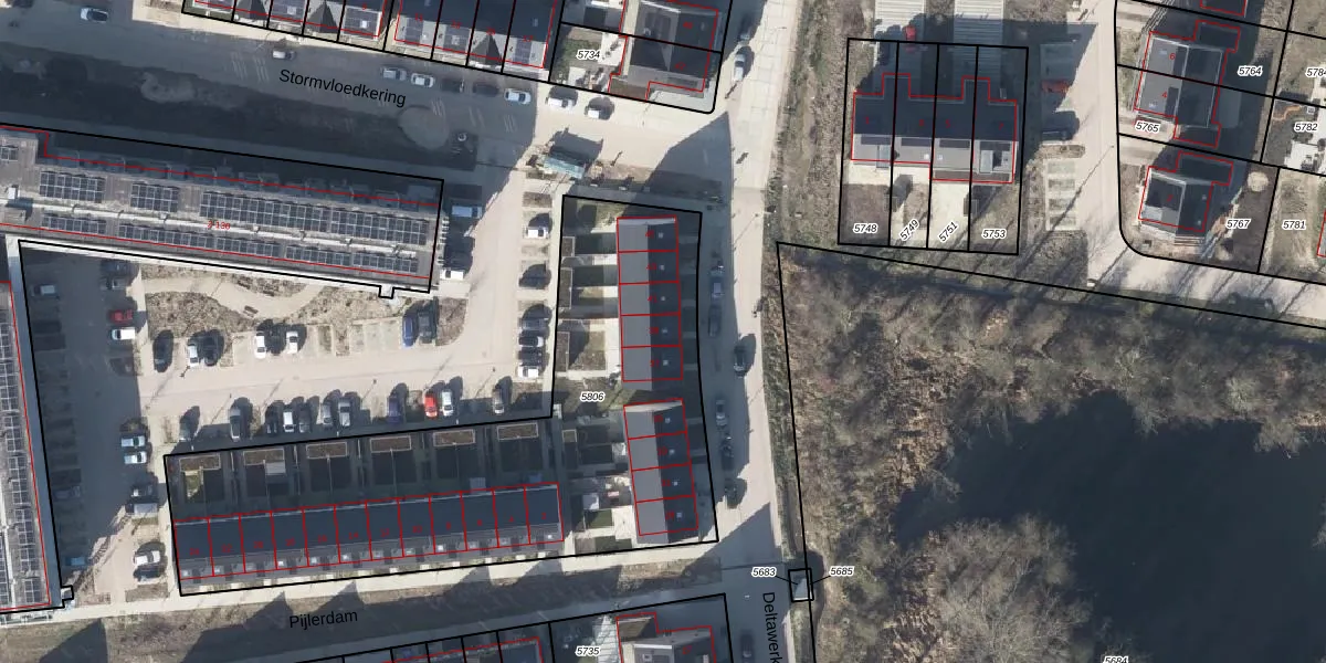 Het perceel waarop Deltawerken 39 staat heeft een oppervlakte van 2385 m². Dit is een zeer groot perceel. De perceeloppervlakte wordt geregistreerd door het Kadaster. Gedetailleerde informatie over de maten van dit perceel kunt u vinden in het rapport Kadastrale kaart met maatvoering van Deltawerken 39.