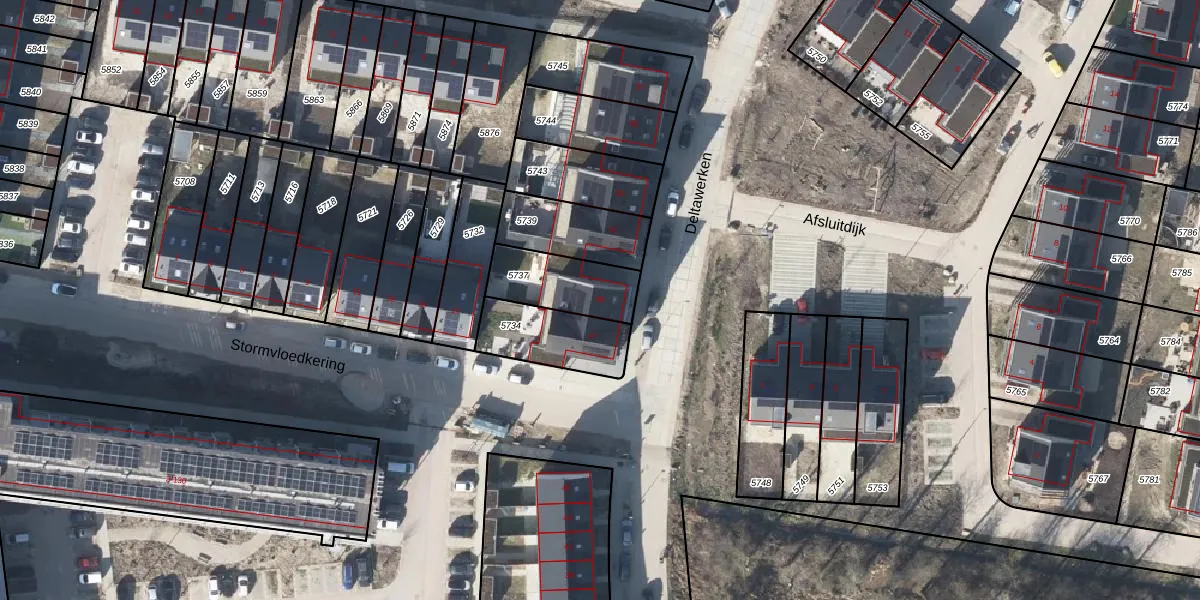 Gebruik de zoekbalk of klik op een perceel voor informatie over de adressen binnen dit perceel.