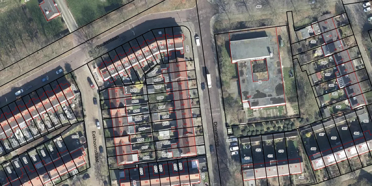 Gebruik de zoekbalk of klik op een perceel voor informatie over de adressen binnen dit perceel.