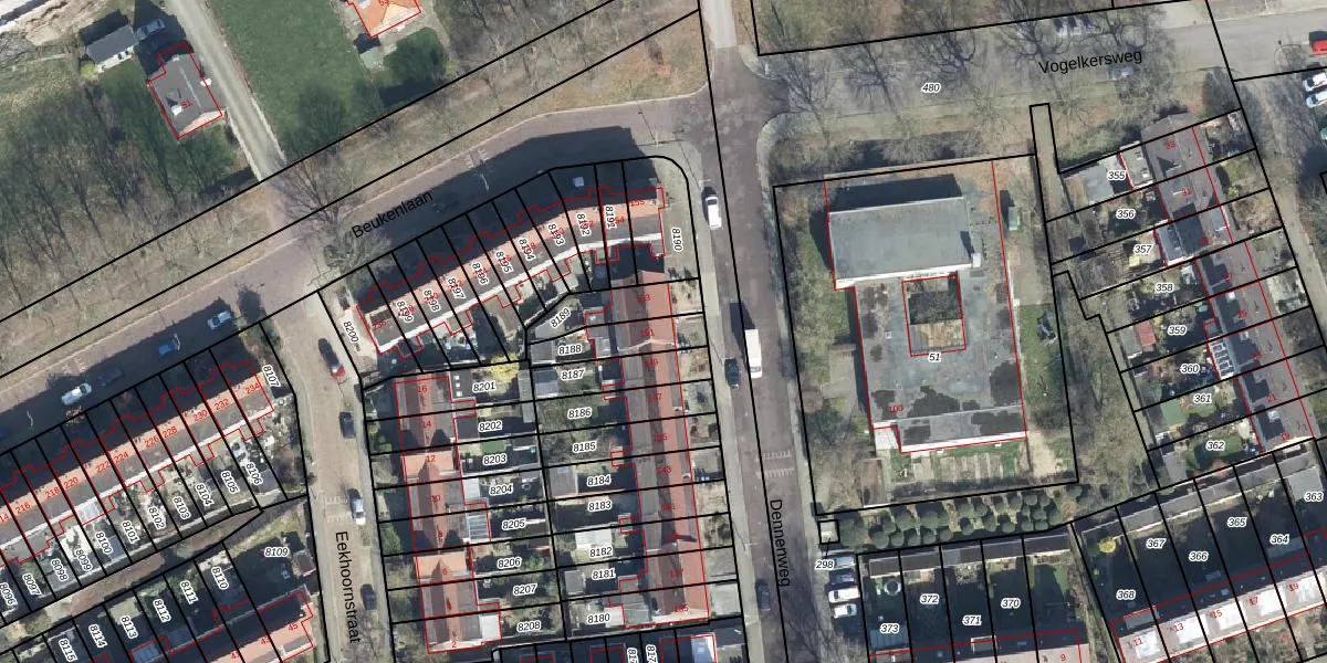 Gebruik de zoekbalk of klik op een perceel voor informatie over de adressen binnen dit perceel.