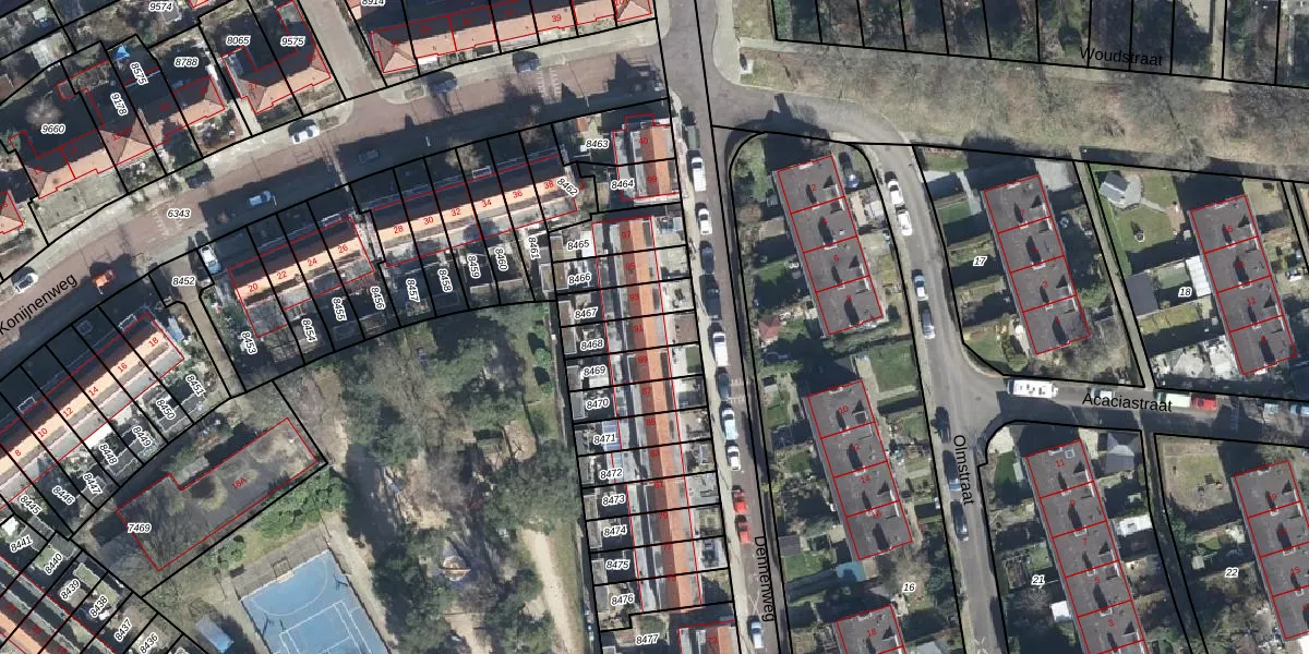Gebruik de zoekbalk of klik op een perceel voor informatie over de adressen binnen dit perceel.