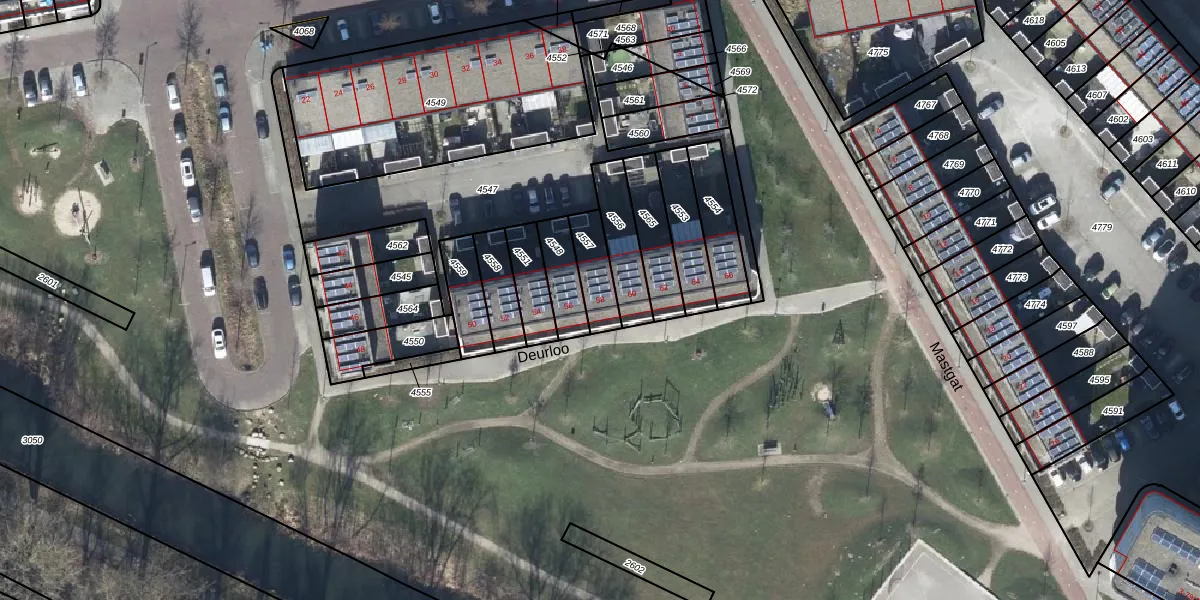 Gebruik de zoekbalk of klik op een perceel voor informatie over de adressen binnen dit perceel.