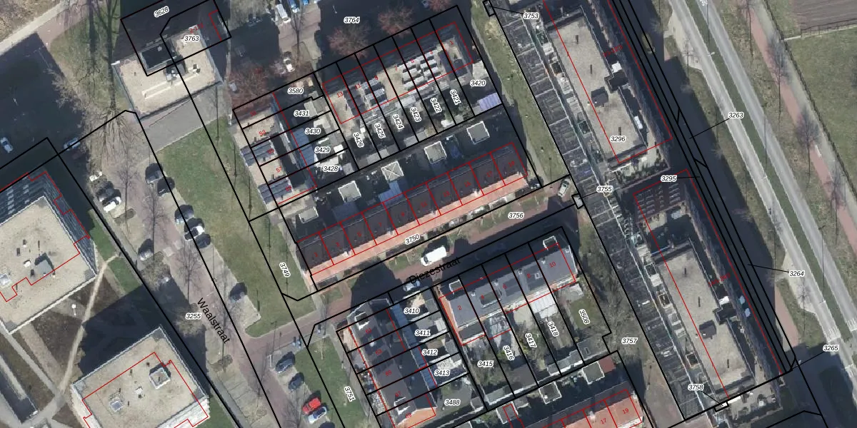 Het perceel waarop Diezestraat 11 staat heeft een oppervlakte van 1245 m². Dit is een zeer groot perceel. De perceeloppervlakte wordt geregistreerd door het Kadaster. Gedetailleerde informatie over de maten van dit perceel kunt u vinden in het rapport Kadastrale kaart met maatvoering van Diezestraat 11.