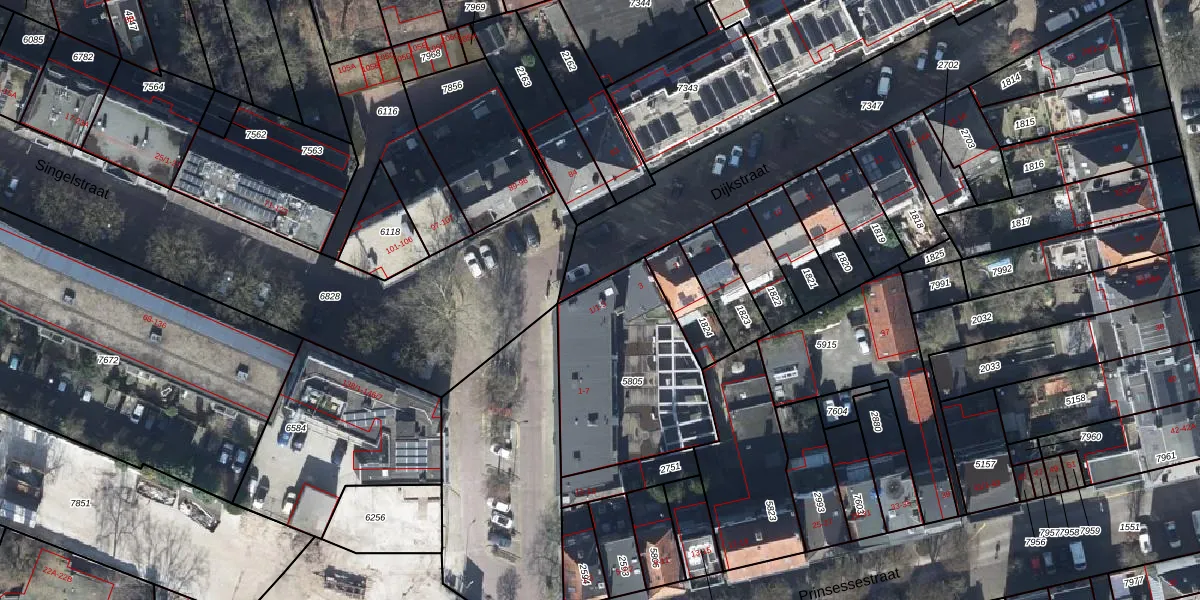 Het perceel waarop Dijkstraat 1-2 staat heeft een oppervlakte van 687 m². Dit is een groot perceel. De perceeloppervlakte wordt geregistreerd door het Kadaster. Gedetailleerde informatie over de maten van dit perceel kunt u vinden in het rapport Kadastrale kaart met maatvoering van Dijkstraat 1-2.