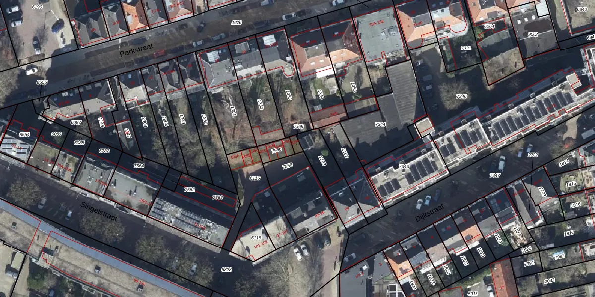 Gebruik de zoekbalk of klik op een perceel voor informatie over de adressen binnen dit perceel.
