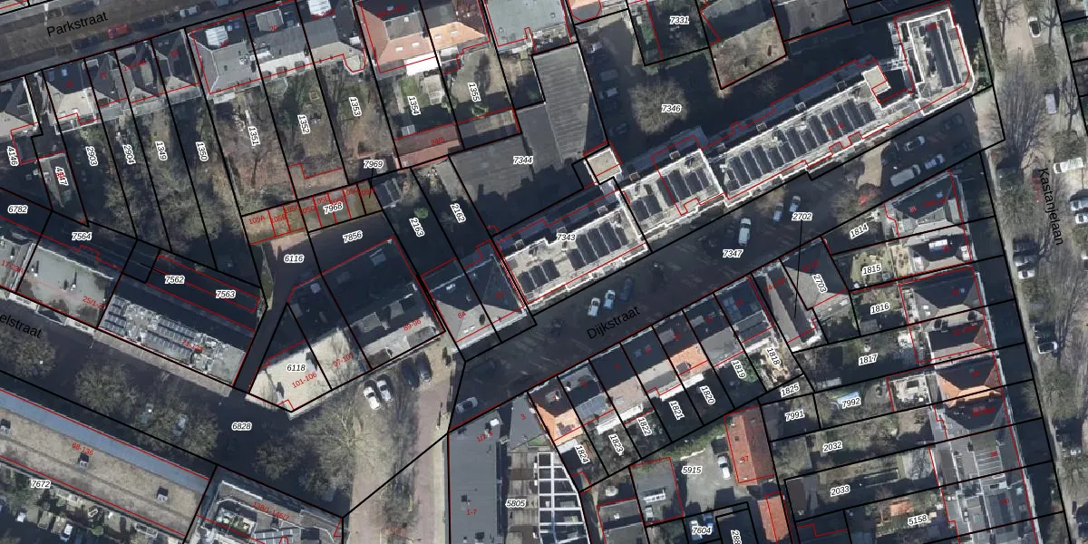 Dijkstraat 62 is gelegen op kadastraal perceel AHM01Q7343. Deze kadastrale aanduiding is uniek en wordt gebruikt door het Kadaster om eigendomsrechten en andere zakelijke rechten vast te leggen. Het perceel maakt onderdeel uit van de kadastrale gemeente Arnhem.