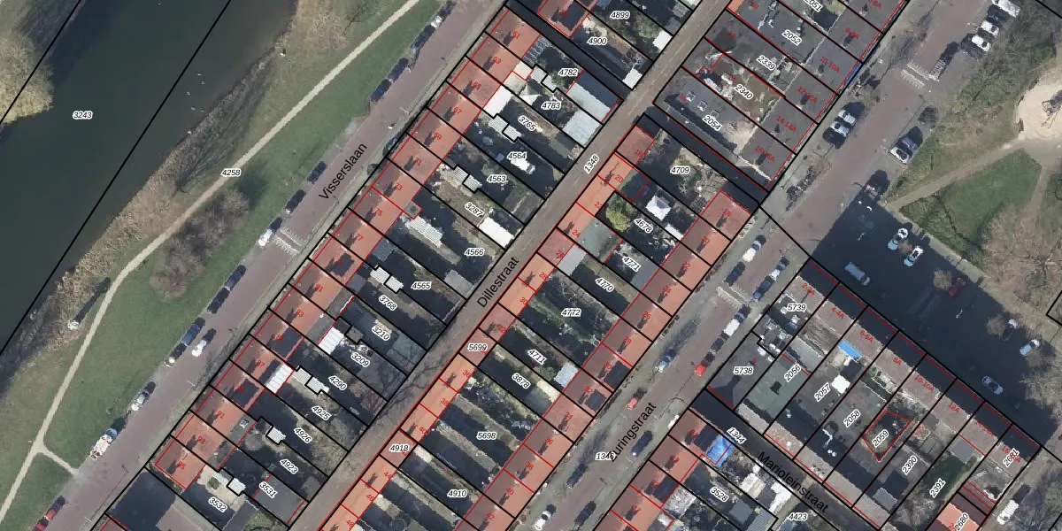 Het perceel waarop Dillestraat 28 staat heeft een oppervlakte van 330 m². Dit is een groot perceel. De perceeloppervlakte wordt geregistreerd door het Kadaster. Gedetailleerde informatie over de maten van dit perceel kunt u vinden in het rapport Kadastrale kaart met maatvoering van Dillestraat 28.