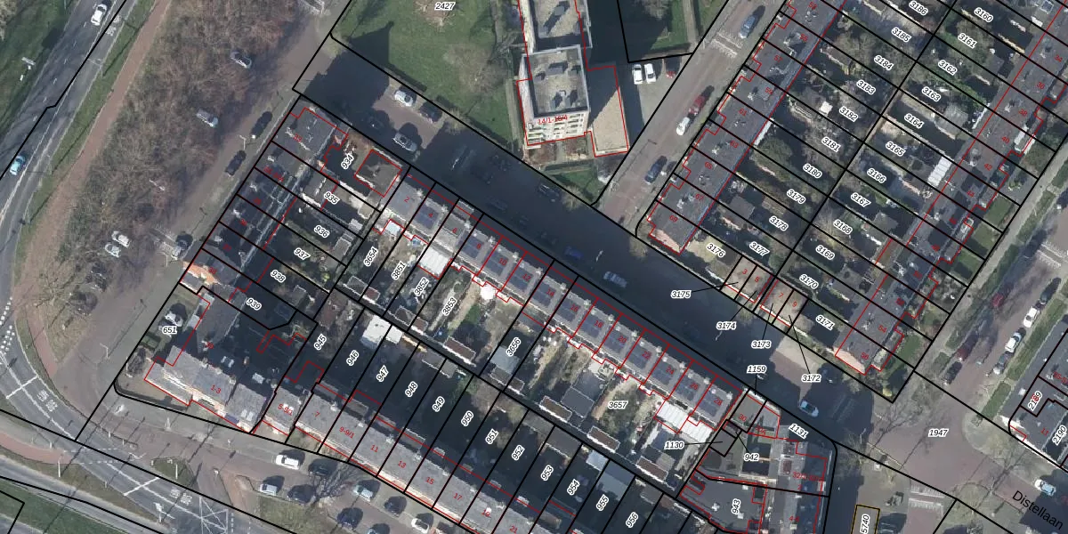 Het perceel waarop Distellaan 12 staat heeft een oppervlakte van 420 m². Dit is een groot perceel. De perceeloppervlakte wordt geregistreerd door het Kadaster. Gedetailleerde informatie over de maten van dit perceel kunt u vinden in het rapport Kadastrale kaart met maatvoering van Distellaan 12.