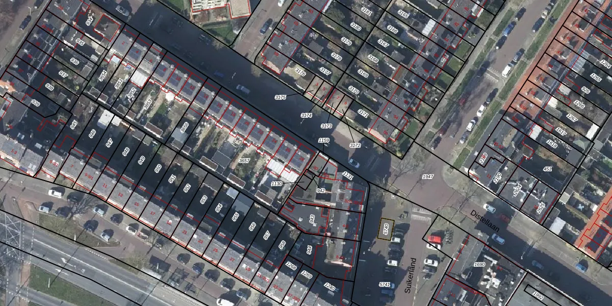 Het perceel waarop Distellaan 28 staat heeft een oppervlakte van 977 m². Dit is een groot perceel. De perceeloppervlakte wordt geregistreerd door het Kadaster. Gedetailleerde informatie over de maten van dit perceel kunt u vinden in het rapport Kadastrale kaart met maatvoering van Distellaan 28.
