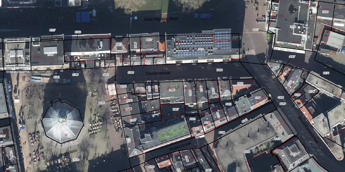 Het perceel waarop Doelenstraat 18 staat heeft een oppervlakte van 180 m². Dit is een middelgroot perceel. De perceeloppervlakte wordt geregistreerd door het Kadaster. Gedetailleerde informatie over de maten van dit perceel kunt u vinden in het rapport Kadastrale kaart met maatvoering van Doelenstraat 18.