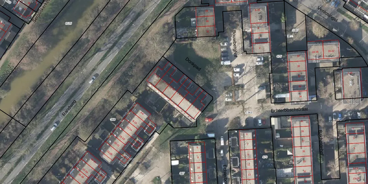 Het perceel waarop Donkpad 9 staat heeft een oppervlakte van 3071 m². Dit is een zeer groot perceel. De perceeloppervlakte wordt geregistreerd door het Kadaster. Gedetailleerde informatie over de maten van dit perceel kunt u vinden in het rapport Kadastrale kaart met maatvoering van Donkpad 9.