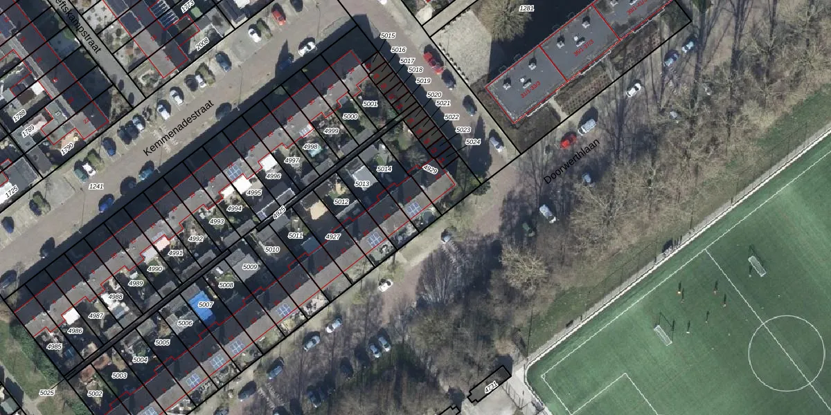Gebruik de zoekbalk of klik op een perceel voor informatie over de adressen binnen dit perceel.