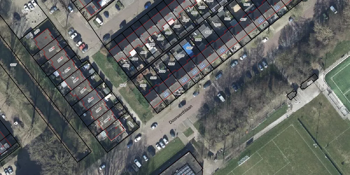 Gebruik de zoekbalk of klik op een perceel voor informatie over de adressen binnen dit perceel.