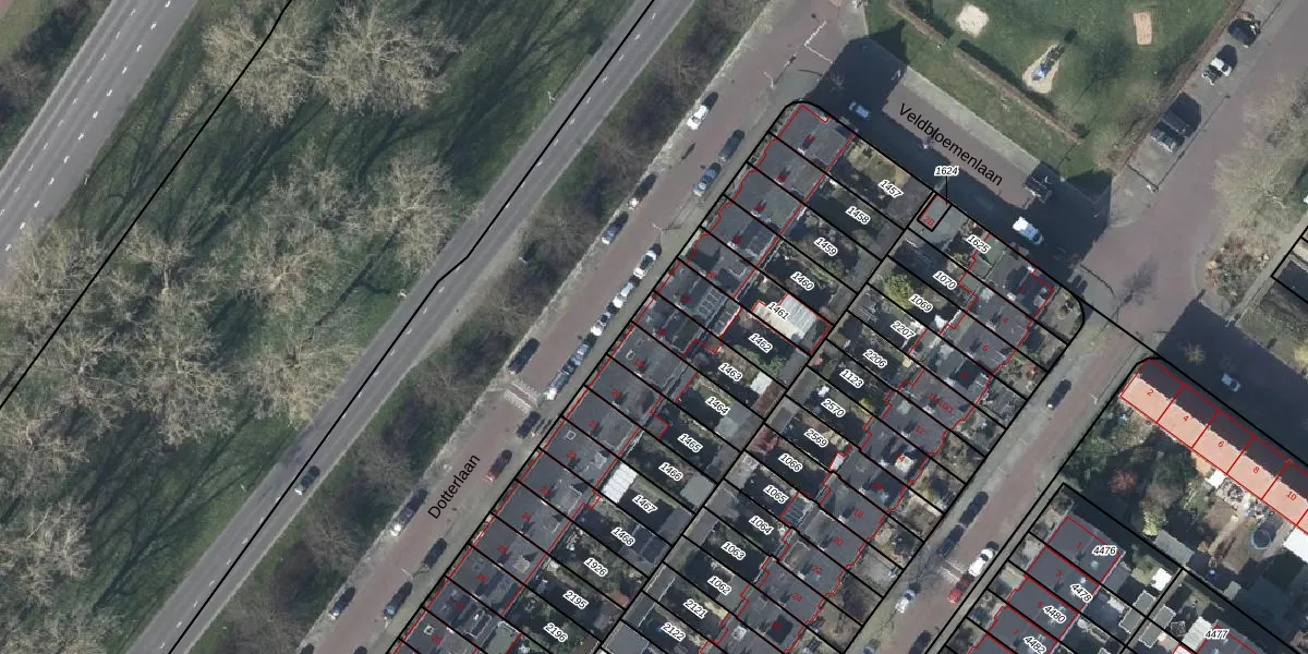 Gebruik de zoekbalk of klik op een perceel voor informatie over de adressen binnen dit perceel.