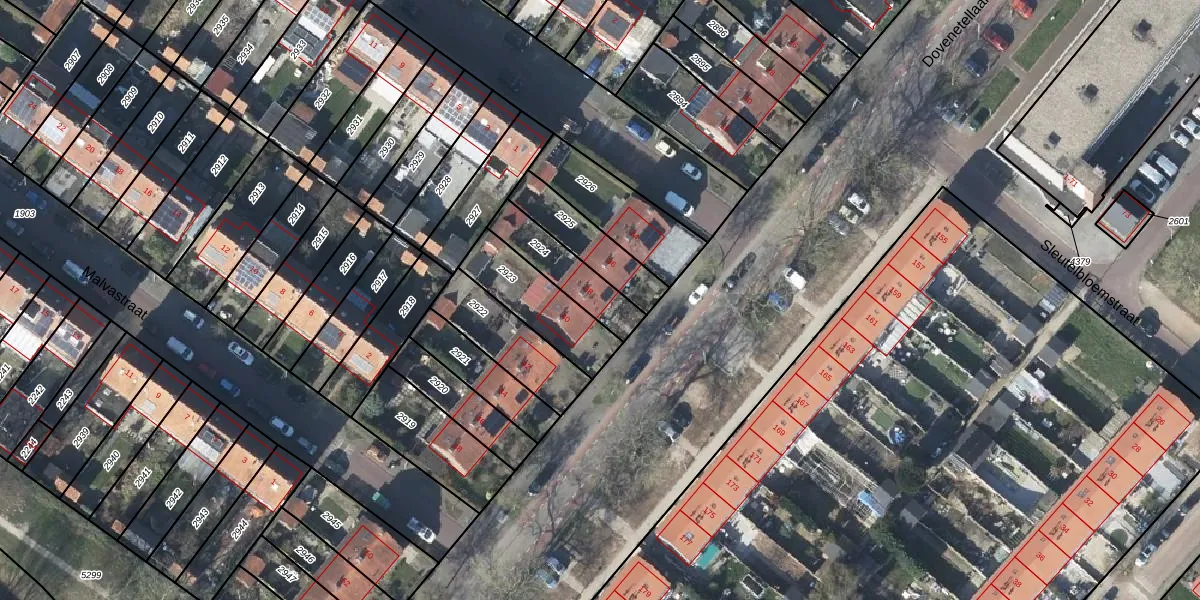Het perceel waarop Dovenetellaan 38 staat heeft een oppervlakte van 177 m². Dit is een middelgroot perceel. De perceeloppervlakte wordt geregistreerd door het Kadaster. Gedetailleerde informatie over de maten van dit perceel kunt u vinden in het rapport Kadastrale kaart met maatvoering van Dovenetellaan 38.