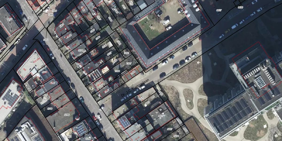 Het perceel waarop Dr. J.C. Hartogslaan 1-D staat heeft een oppervlakte van 85 m². Dit is een klein perceel. De perceeloppervlakte wordt geregistreerd door het Kadaster. Gedetailleerde informatie over de maten van dit perceel kunt u vinden in het rapport Kadastrale kaart met maatvoering van Dr. J.C. Hartogslaan 1-D.