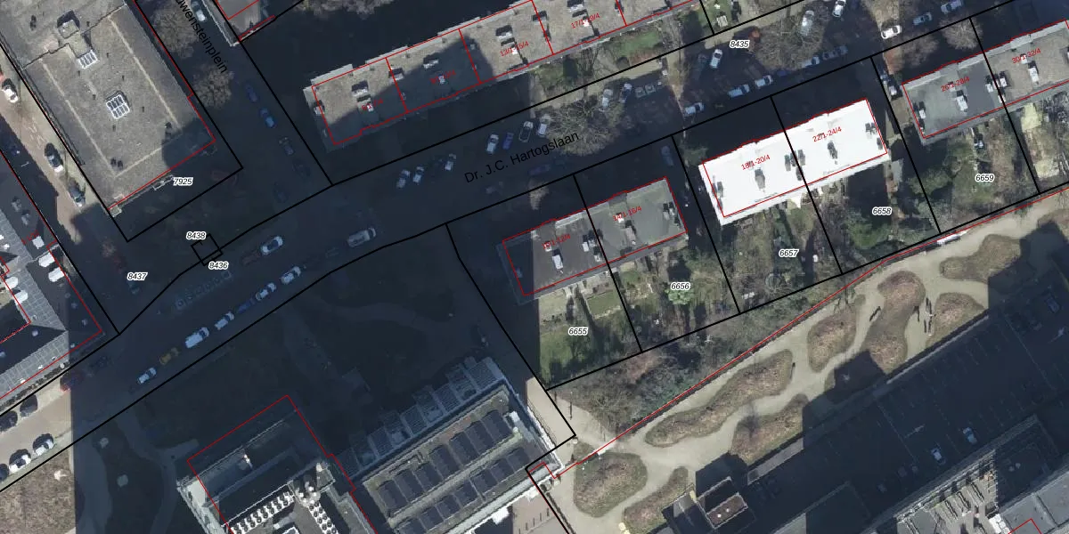 Dr. J.C. Hartogslaan 10-4 is gelegen op kadastraal perceel AHM01R6655. Deze kadastrale aanduiding is uniek en wordt gebruikt door het Kadaster om eigendomsrechten en andere zakelijke rechten vast te leggen. Het perceel maakt onderdeel uit van de kadastrale gemeente Arnhem.