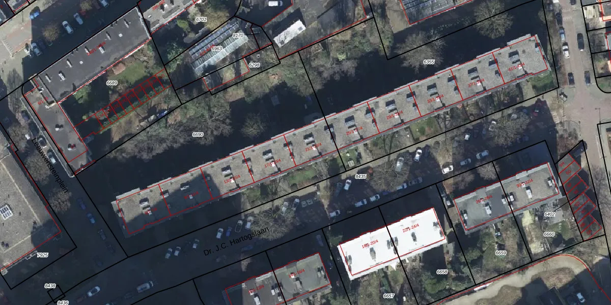 Dr. J.C. Hartogslaan 21-2 is gelegen op kadastraal perceel AHM01R6690. Deze kadastrale aanduiding is uniek en wordt gebruikt door het Kadaster om eigendomsrechten en andere zakelijke rechten vast te leggen. Het perceel maakt onderdeel uit van de kadastrale gemeente Arnhem.