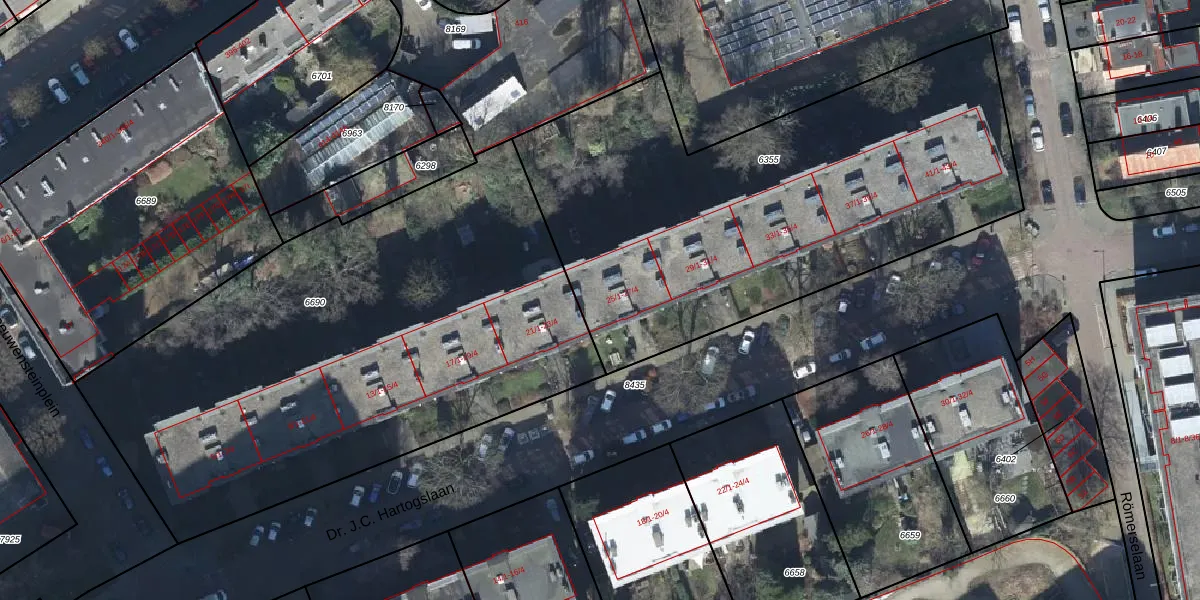 Dr. J.C. Hartogslaan 25-3 is gelegen op kadastraal perceel AHM01R6355. Deze kadastrale aanduiding is uniek en wordt gebruikt door het Kadaster om eigendomsrechten en andere zakelijke rechten vast te leggen. Het perceel maakt onderdeel uit van de kadastrale gemeente Arnhem.