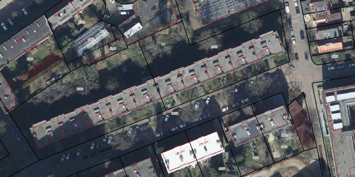Dr. J.C. Hartogslaan 27-1 is gelegen op kadastraal perceel AHM01R6355. Deze kadastrale aanduiding is uniek en wordt gebruikt door het Kadaster om eigendomsrechten en andere zakelijke rechten vast te leggen. Het perceel maakt onderdeel uit van de kadastrale gemeente Arnhem.