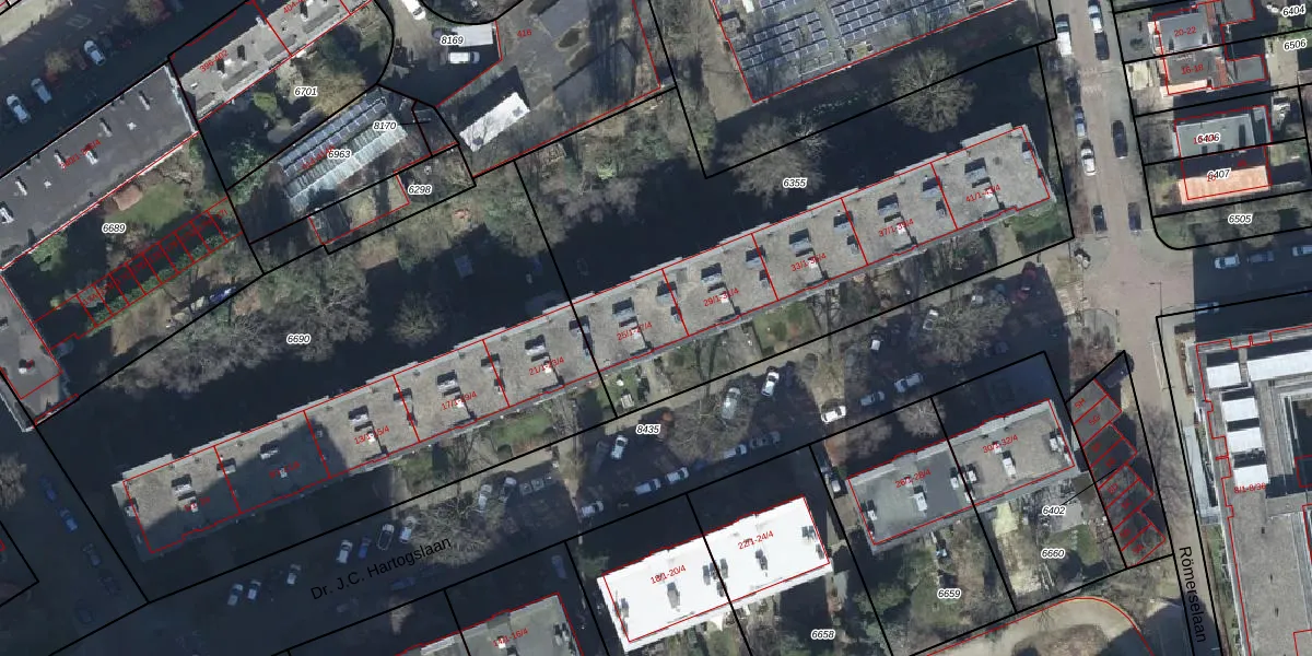 Dr. J.C. Hartogslaan 27-2 is gelegen op kadastraal perceel AHM01R6355. Deze kadastrale aanduiding is uniek en wordt gebruikt door het Kadaster om eigendomsrechten en andere zakelijke rechten vast te leggen. Het perceel maakt onderdeel uit van de kadastrale gemeente Arnhem.