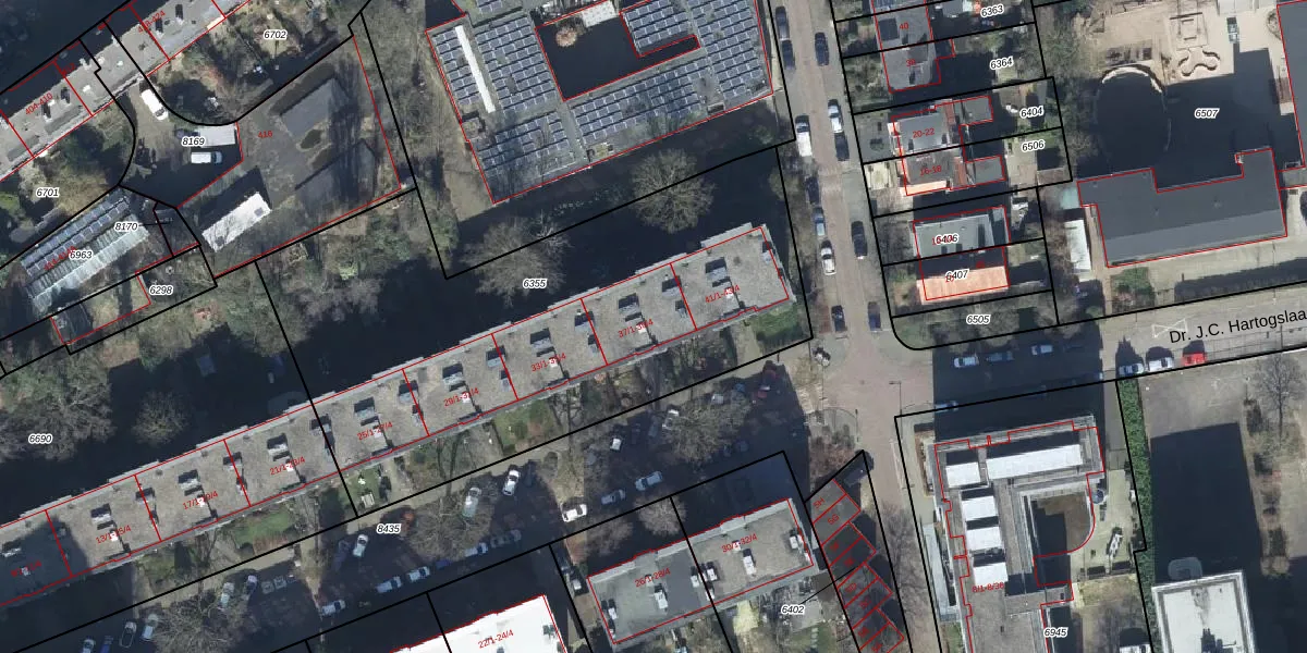 Dr. J.C. Hartogslaan 39-2 is gelegen op kadastraal perceel AHM01R6355. Deze kadastrale aanduiding is uniek en wordt gebruikt door het Kadaster om eigendomsrechten en andere zakelijke rechten vast te leggen. Het perceel maakt onderdeel uit van de kadastrale gemeente Arnhem.