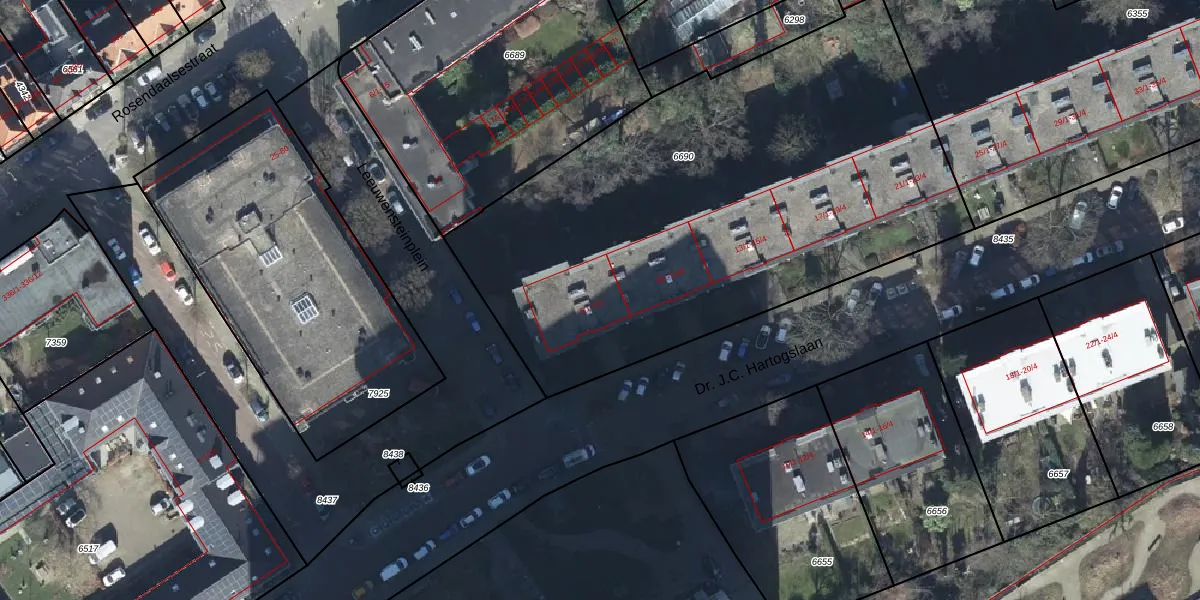 Dr. J.C. Hartogslaan 7-3 is gelegen op kadastraal perceel AHM01R6690. Deze kadastrale aanduiding is uniek en wordt gebruikt door het Kadaster om eigendomsrechten en andere zakelijke rechten vast te leggen. Het perceel maakt onderdeel uit van de kadastrale gemeente Arnhem.