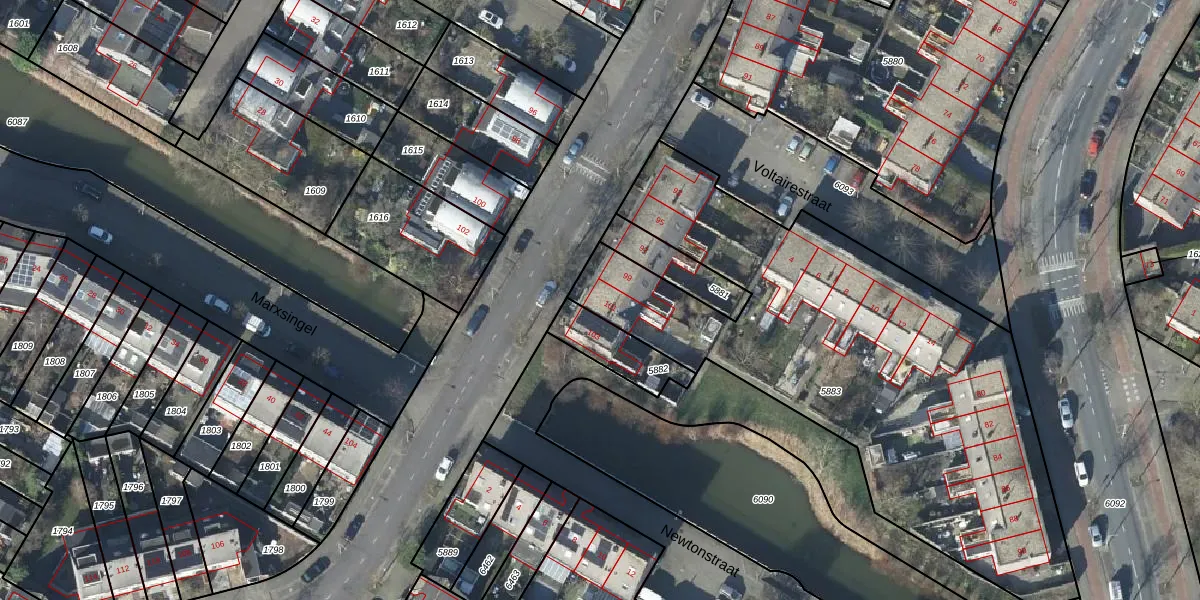 Het perceel waarop Dr. Joop den Uylsingel 101 staat heeft een oppervlakte van 2560 m². Dit is een zeer groot perceel. De perceeloppervlakte wordt geregistreerd door het Kadaster. Gedetailleerde informatie over de maten van dit perceel kunt u vinden in het rapport Kadastrale kaart met maatvoering van Dr. Joop den Uylsingel 101.