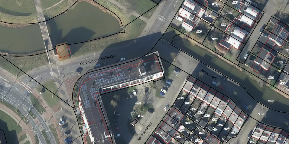 Het perceel waarop Dr. Joop den Uylsingel 24-A staat heeft een oppervlakte van 1993 m². Dit is een zeer groot perceel. De perceeloppervlakte wordt geregistreerd door het Kadaster. Gedetailleerde informatie over de maten van dit perceel kunt u vinden in het rapport Kadastrale kaart met maatvoering van Dr. Joop den Uylsingel 24-A.