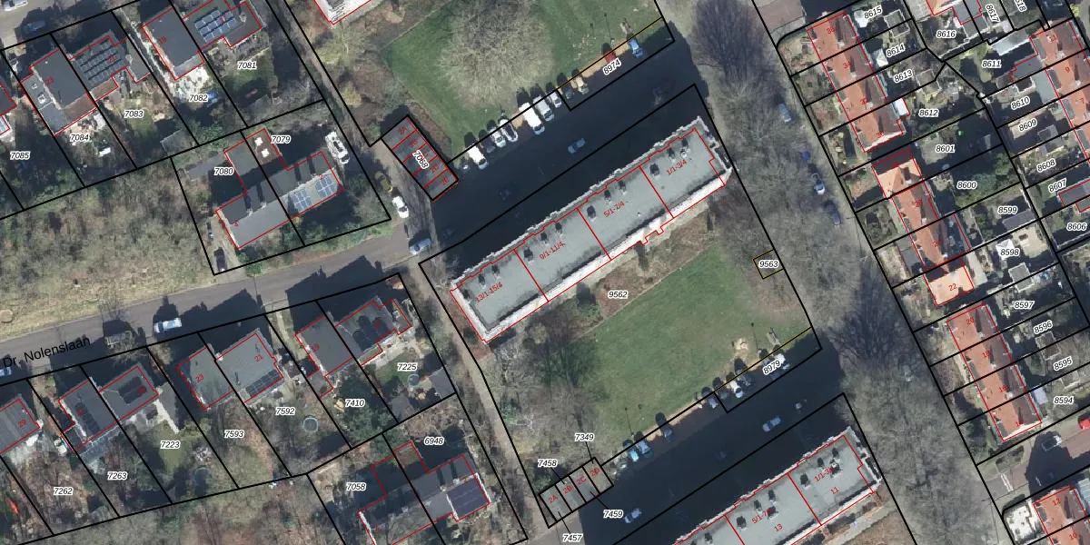 Dr. Nolenslaan 11-4 is gelegen op kadastraal perceel AHM01C9562. Deze kadastrale aanduiding is uniek en wordt gebruikt door het Kadaster om eigendomsrechten en andere zakelijke rechten vast te leggen. Het perceel maakt onderdeel uit van de kadastrale gemeente Arnhem.