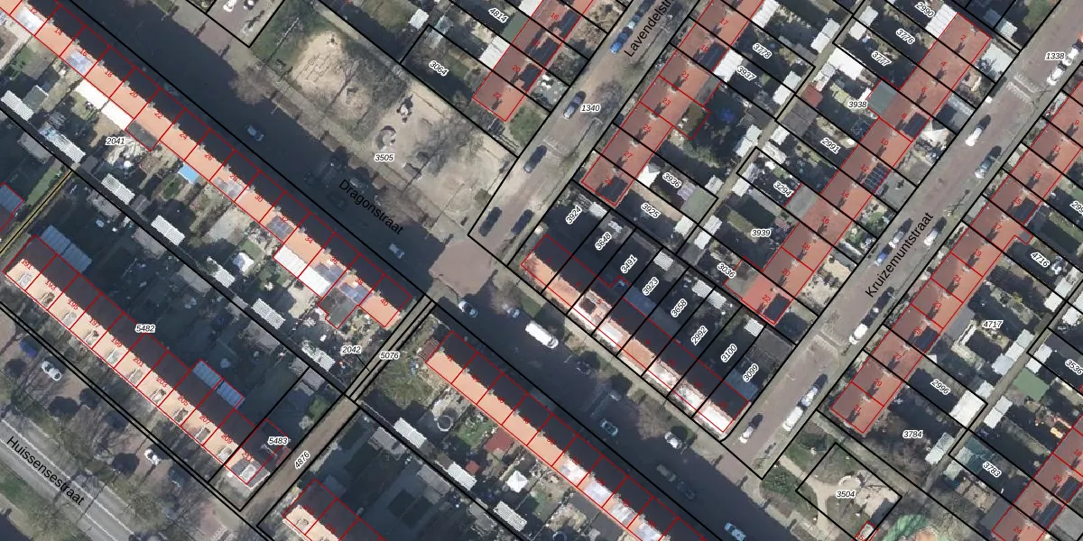 Het perceel waarop Dragonstraat 1 staat heeft een oppervlakte van 174 m². Dit is een middelgroot perceel. De perceeloppervlakte wordt geregistreerd door het Kadaster. Gedetailleerde informatie over de maten van dit perceel kunt u vinden in het rapport Kadastrale kaart met maatvoering van Dragonstraat 1.