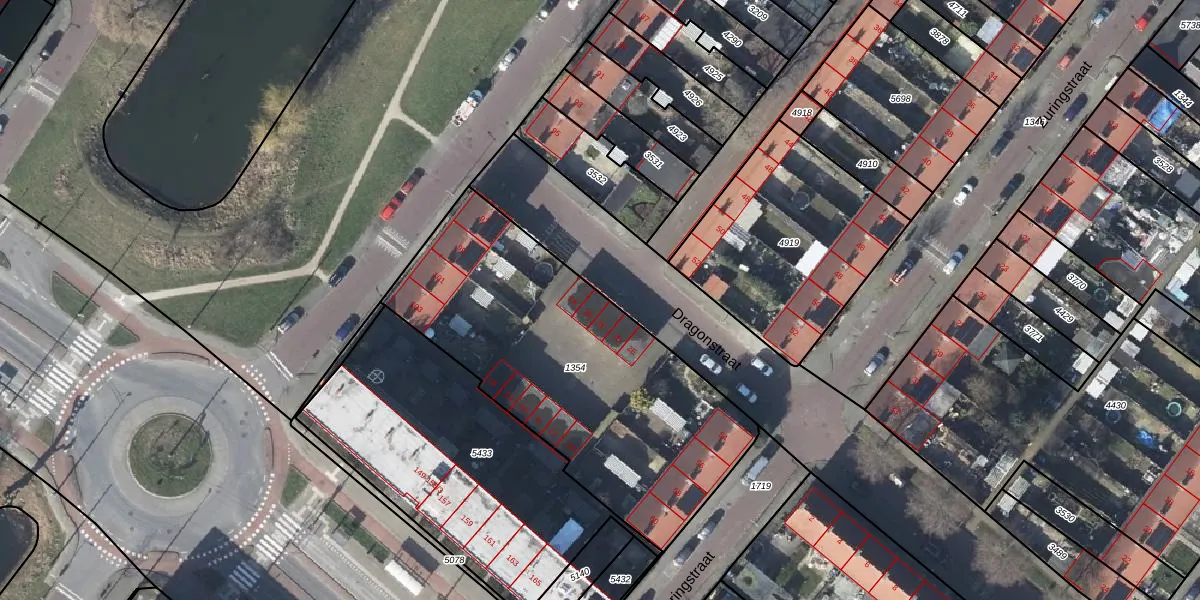 Het perceel waarop Dragonstraat 2-B staat heeft een oppervlakte van 1607 m². Dit is een zeer groot perceel. De perceeloppervlakte wordt geregistreerd door het Kadaster. Gedetailleerde informatie over de maten van dit perceel kunt u vinden in het rapport Kadastrale kaart met maatvoering van Dragonstraat 2-B.