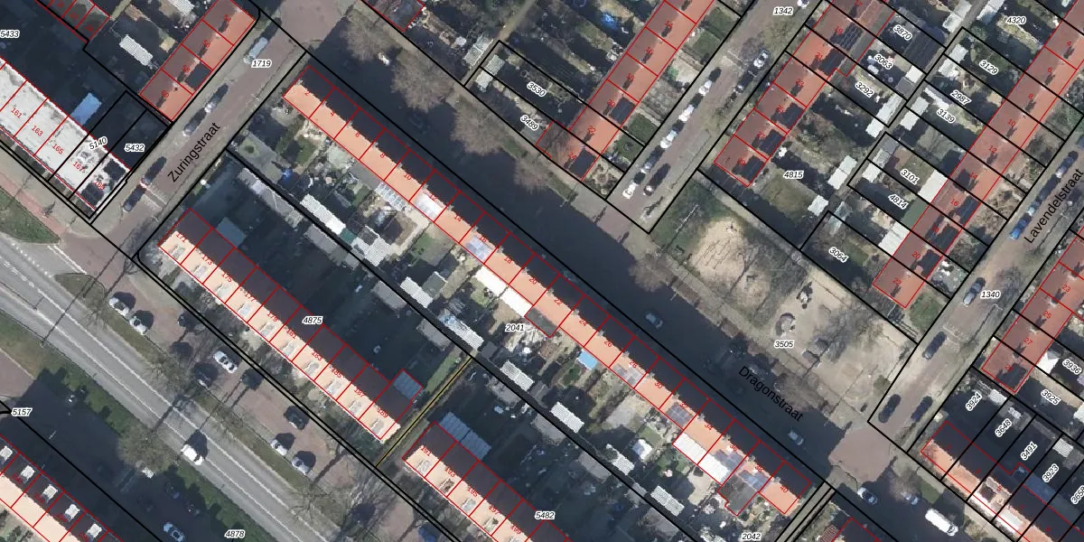 Het perceel waarop Dragonstraat 20 staat heeft een oppervlakte van 2997 m². Dit is een zeer groot perceel. De perceeloppervlakte wordt geregistreerd door het Kadaster. Gedetailleerde informatie over de maten van dit perceel kunt u vinden in het rapport Kadastrale kaart met maatvoering van Dragonstraat 20.