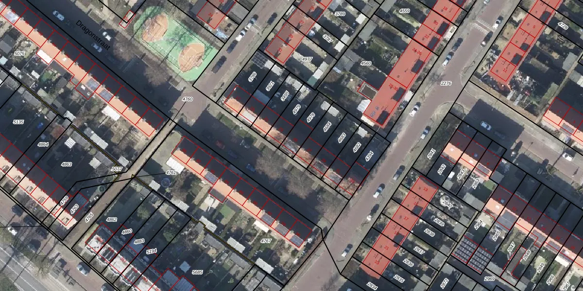 Het perceel waarop Dragonstraat 25 staat heeft een oppervlakte van 145 m². Dit is een middelgroot perceel. De perceeloppervlakte wordt geregistreerd door het Kadaster. Gedetailleerde informatie over de maten van dit perceel kunt u vinden in het rapport Kadastrale kaart met maatvoering van Dragonstraat 25.
