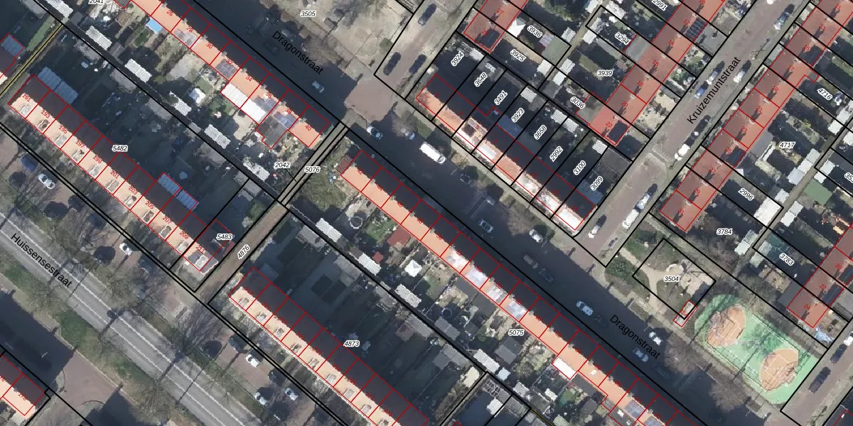 Het perceel waarop Dragonstraat 48 staat heeft een oppervlakte van 2914 m². Dit is een zeer groot perceel. De perceeloppervlakte wordt geregistreerd door het Kadaster. Gedetailleerde informatie over de maten van dit perceel kunt u vinden in het rapport Kadastrale kaart met maatvoering van Dragonstraat 48.
