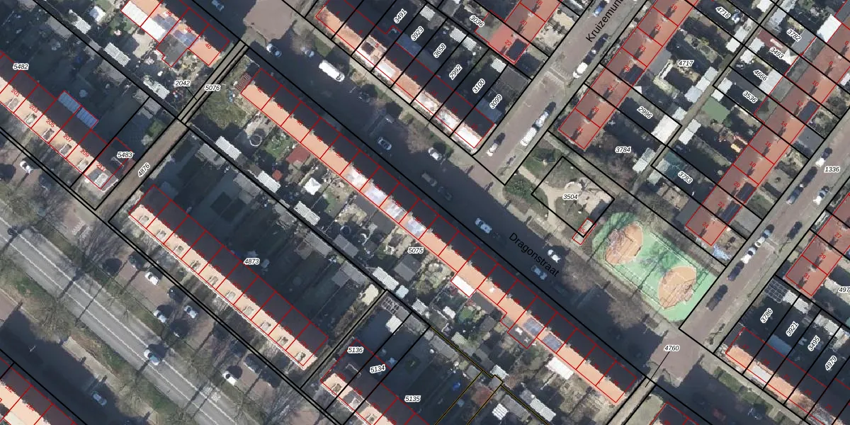 Het perceel waarop Dragonstraat 58 staat heeft een oppervlakte van 2914 m². Dit is een zeer groot perceel. De perceeloppervlakte wordt geregistreerd door het Kadaster. Gedetailleerde informatie over de maten van dit perceel kunt u vinden in het rapport Kadastrale kaart met maatvoering van Dragonstraat 58.