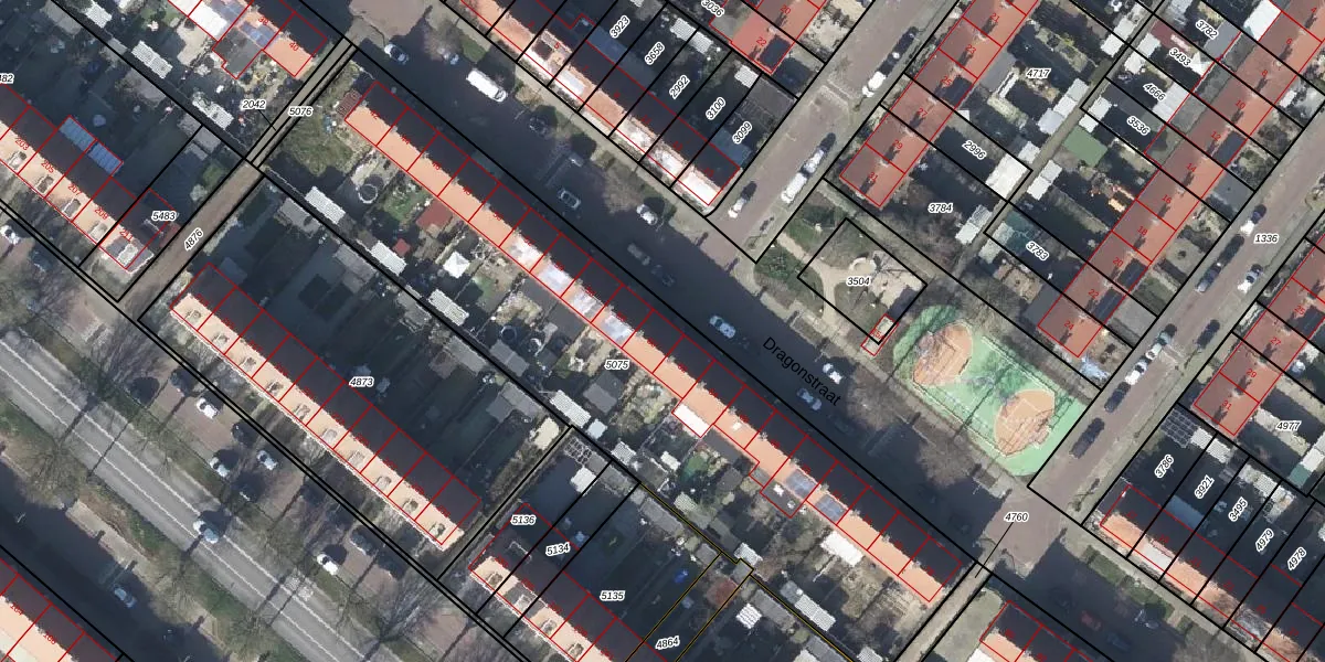 Het perceel waarop Dragonstraat 60 staat heeft een oppervlakte van 2914 m². Dit is een zeer groot perceel. De perceeloppervlakte wordt geregistreerd door het Kadaster. Gedetailleerde informatie over de maten van dit perceel kunt u vinden in het rapport Kadastrale kaart met maatvoering van Dragonstraat 60.