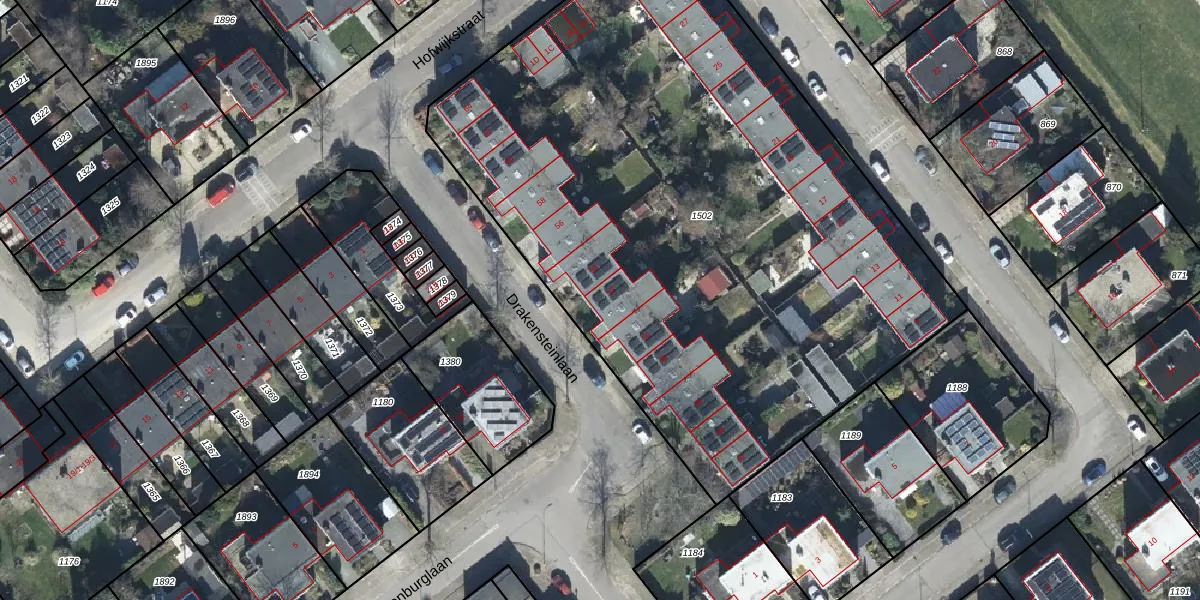 Het perceel waarop Drakensteinlaan 52 staat heeft een oppervlakte van 4346 m². Dit is een zeer groot perceel. De perceeloppervlakte wordt geregistreerd door het Kadaster. Gedetailleerde informatie over de maten van dit perceel kunt u vinden in het rapport Kadastrale kaart met maatvoering van Drakensteinlaan 52.