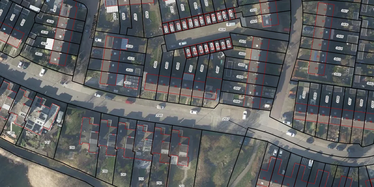Gebruik de zoekbalk of klik op een perceel voor informatie over de adressen binnen dit perceel.